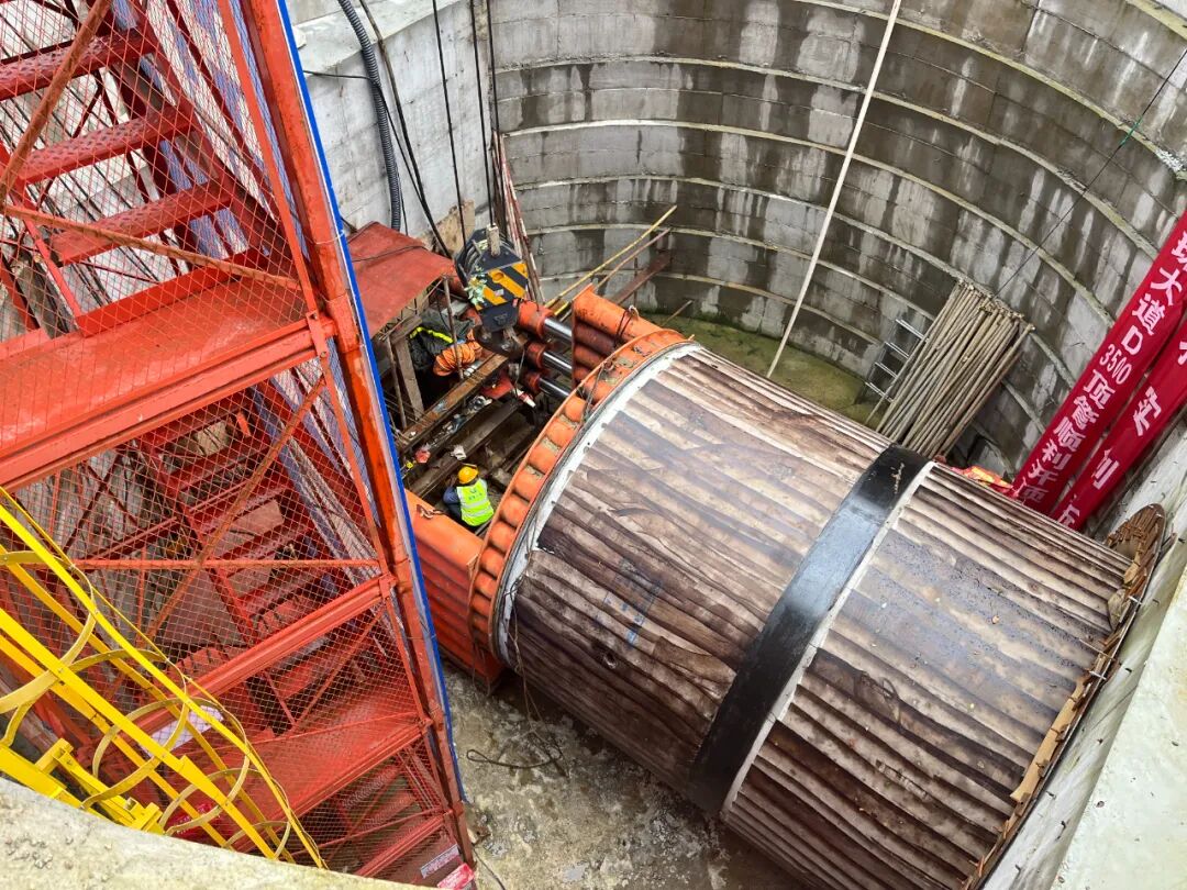 本次采用的預(yù)制頂管技術(shù)屬非開挖管道鋪設(shè)工藝,通過頂進(jìn)設(shè)備將高性能混凝土管節(jié)按設(shè)計(jì)標(biāo)高精準(zhǔn)頂入地層。單節(jié)頂管長(zhǎng)2.5米、外徑4.14米,采用C50混凝土并達(dá)到P8抗?jié)B等級(jí),確保管道在復(fù)雜地質(zhì)與高水壓環(huán)境下的結(jié)構(gòu)安全。相較于傳統(tǒng)開挖施工,該技術(shù)有效規(guī)避了對(duì)道路交通、周邊建筑及城市環(huán)境的干擾,尤其適用于建成區(qū)的地下管網(wǎng)改造。施工中,管道接口采用承插式連接并加裝遇水膨脹密封條,形成多重防滲體系,進(jìn)一步保障了系統(tǒng)密封可靠性。